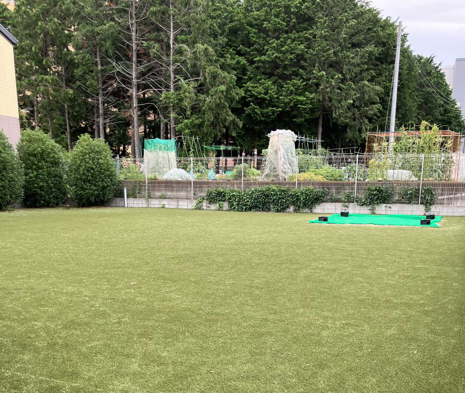 広い人工芝の園庭で体をたくさん動かして遊びます
